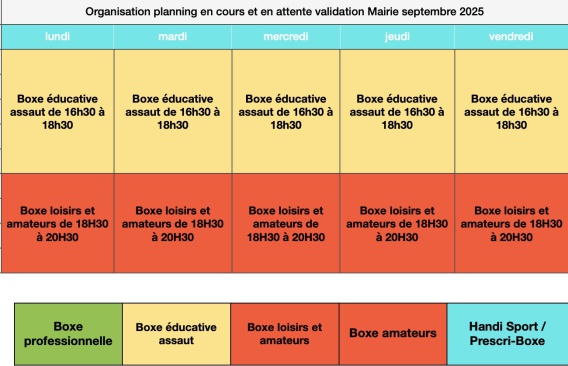 Le planning sera confirmé à l'ouverture le jeudi 4 septembre 2025 à partir de 18h30.